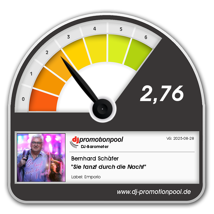 8 der Deutschen Schlagercharts! Mit "SIE TANZT DURCH DIE NACHT" legt Bernhard Schäfer nun seine